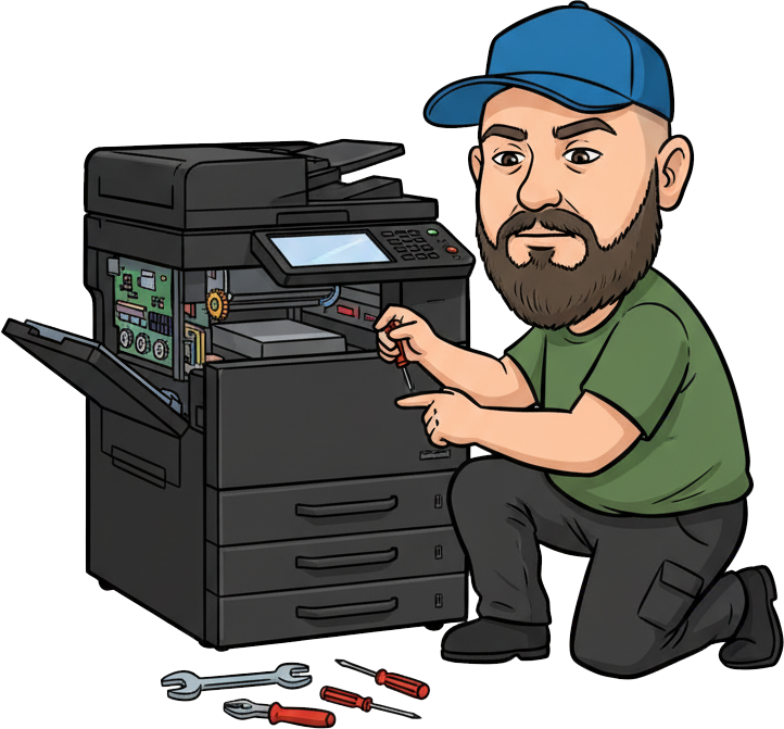 HW servis: odstranění mechanických závad, záseky papíru, profylaktické prohlídky, špinění při tisku, výměny válců, fixací apod.